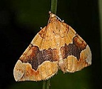 De oranje bruinbandspanner komt voor in open struweel en heggen op de zandgronden.