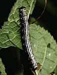 Hij lijkt wat op de rups van de bonte bessenvlinder,