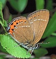 Langs de achterrand van de onderkant van de achtervleugel bevindt zich