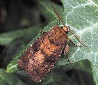 De vlinder, met een spanwijdte van 32 – 40 mm, is eentonig bruin