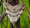 Het mannetje van de streepblokspanner heeft extreem lange valven