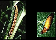 De overwinterende rups is te vinden van juli tot april op deze plant.