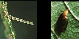 De rupsjes zijn variabel in kleur en tekening, van groen tot bontgetekend.