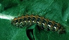 De rups wordt tot 55 mm lang, heeft een bijna zwart lijf
