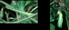 Hij verpopt uiteindelijk in samengesponnen bladeren.
