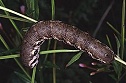 Zijn grondkleur is groen tot zwartbruin met bleek grijs.
