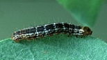Jonge rupsen spinnen uiteinden van jonge loten samen.