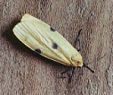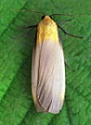 Zijn lijf is zwart met een voornamelijk geelachtig wit dorsaal gebied
