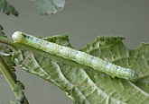 De kop is groen en op het 5e abdominale segment zit een rudimentaire buikpoot;
