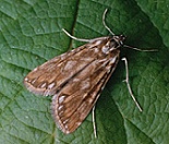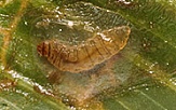De rups leeft in een kokertje dat hij uit twee elliptische bladstukjes heeft samengesponnen.