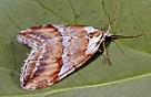 In rust vouwen de voorvleugels half over elkaar, daarmee een takje 'omarmend'.