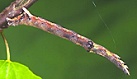 Hij verpopt in een spinsel tussen bladeren.