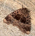 en donkerbruin gebandeerde achtervleugels.