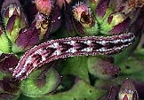 De rupsen vreten aan bloemen, vruchtjes en bladeren.