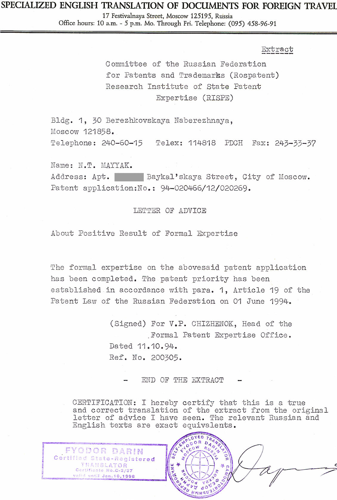 I am planning to place information here on the exercise machine that works against your lack of will power and makes you regularly exercise. In 1994, I applied for a patent with the Russian Patent Office. The Office issued a Letter of Advice, indicating that I was granted patent priority on the new exercise machine and could proceed in order to get a Russian patent. |