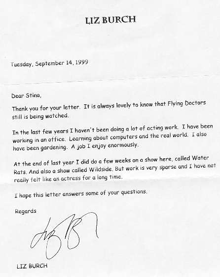 A letter, a picture and an autograph from Liz Burch!!