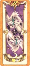 In Episode 43, Sakura, Li, and Meilin faced off against both of Twin's forms. It broke free form Windy's grasp, and as well when Li and Sakura attempted a duel lightning attack. The only way to beat it was for Li and meilin to use their matrial arts skills to fight it, seeing as they didn't need to exchange signals. When used, Twin can clone whatever the summoner commands.