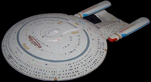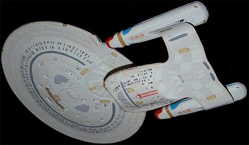 This model was built straight from the box, but I utilized the paint instructions from the larger 1/1400 scale AMT/ERTL Enterprise-D model kit to add detail, which was severely lacking on this small model.