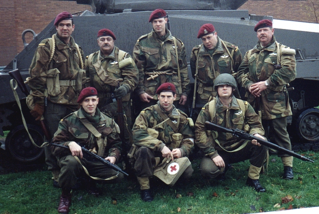 1 Cdn Paras pose before they march in a Remembrance Day Parade, 2000. |