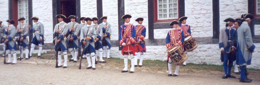 French forces including the Chambley Group wait for battle at Fort Louisbourg, 1999. |
