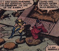 Image(s) featured on this page were scanned specifically for use on this site using Marvel materials. Wolverine©, Logan©, The X-Men©, related character(s) and the distinctive likeness(es) thereof are Trademarks of Marvel Characters, Inc. and are used with permission. Copyright © 1974-2001 Marvel Characters Inc. All Rights Reserved. Visit the official Marvel Site by following the link on the logo or go to http://www.marvel.com. |