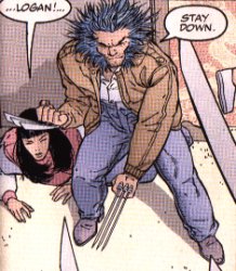 Image(s) featured on this page were scanned specifically for use on this site using Marvel materials. Wolverine©, Logan©, The X-Men©, related character(s) and the distinctive likeness(es) thereof are Trademarks of Marvel Characters, Inc. and are used with permission. Copyright © 1974-2001 Marvel Characters Inc. All Rights Reserved. Visit the official Marvel Site by following the link on the logo or go to http://www.marvel.com. |