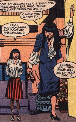 During the time when Mariko was prevented from marrying Logan due to the unfinished business of getting rid of Clan Yashida's criminal ties, Mariko took the responsibility of caring for Logan's foster daughter. From all indications of her relationship with Akiko, Mariko had a strong maternal streak.