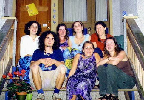 This is a my highschool bud Jennifer Boucher before heading out with her friends on her 23rd birthday in Vancouver. She is in the psycodelic purple and another friend Pauline is sitting in the far back right.
