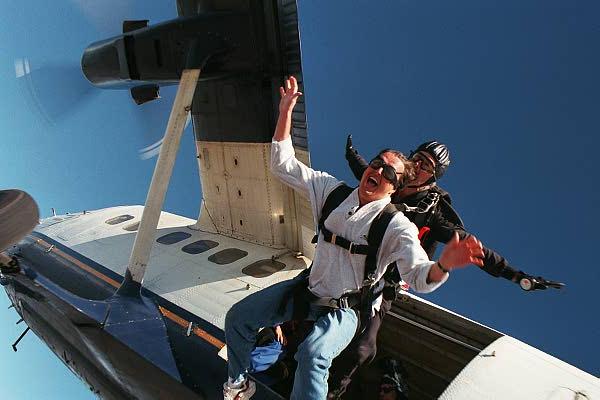 Here is a recent picture of a London buddy of mine, Joe Prutch, skydiving in tandem from 10,000 ft. And Another. Quite the wildman if you ask me! Keep up the fun stuff Joe!