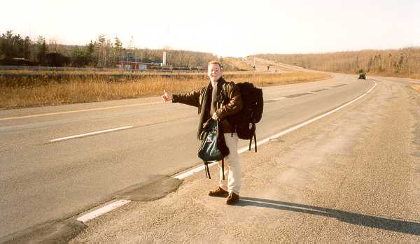 My good friend and travelmate Trent on our way to Halifax hitchiking.