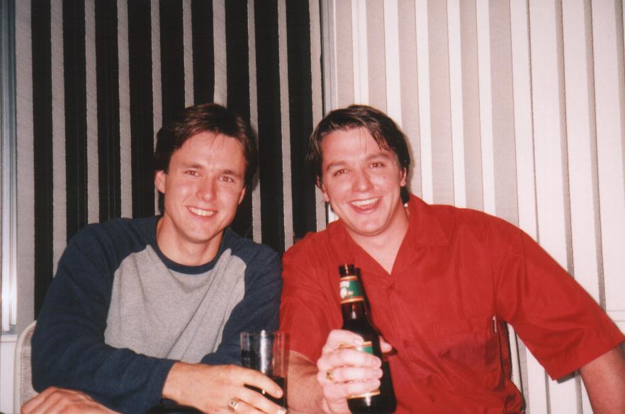 Old roomie Mike Kenny and I in Edmonton partying together.