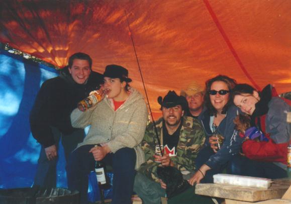 The first camping trip Jenn and I took together was to Cataract Creek in Kananaskis Country. Here we are with a group of friends around the campfire. We wandered down the creek to a fishing hole and caught nothing but a clue about how cool the Rockies can be in early summer. The campground was tucked away nicely between a mountain range and had a hill with a great view from the road on the way out which was pretty sweet on the eyes. Notice the snow on the mountains off in the distance and keep in mind this was late May.