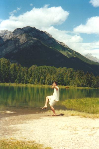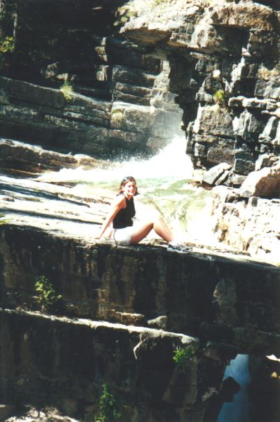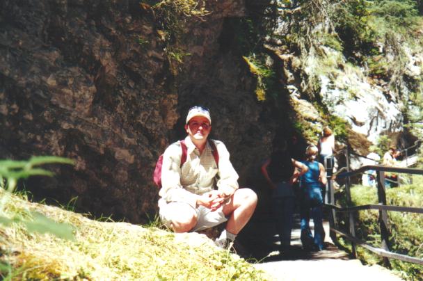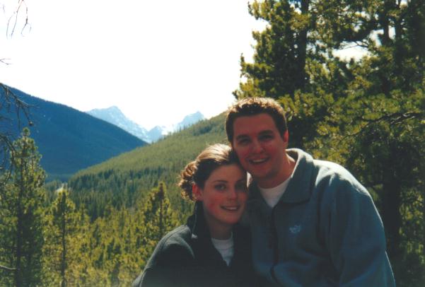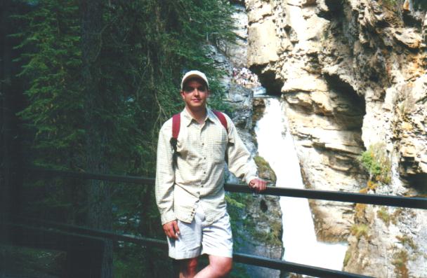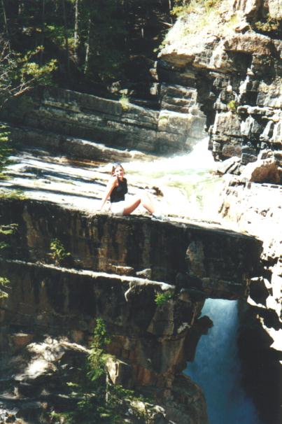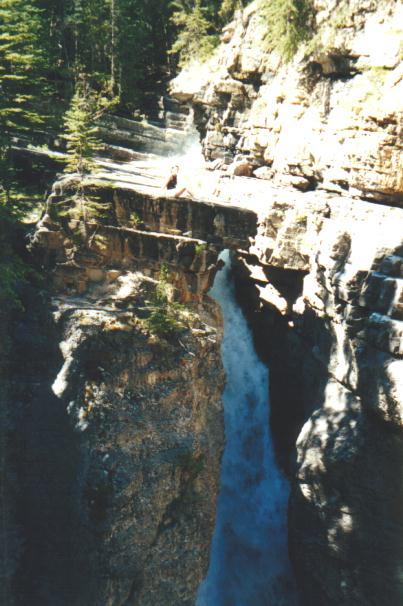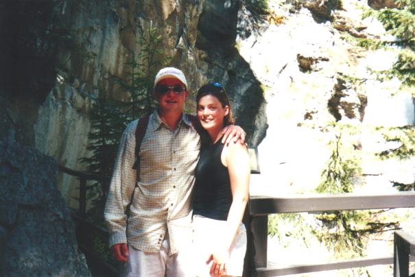 Being out in Banff you should go up to the Johnston Canyon to see the waterfalls not to mention the nice walk. There you will find a small waterfall (15m) after about a 1.5 km walk, after about 3km you will come to a much larger one that is 30m high and has a neat piece of trivia behind it. The worlds highest successful kayak descent off a waterfall. Just to give you some perspective Jenn was brave enough to go out near the edge to show the falls shear heigth and size. Here she is up close, a little further, and finally from a distance. The picture shows only about 1/2 of the waterfall just in case you happen to be scared of heights. Pretty high huh! Here is a picture of us, actually me trying not to let Jenn to far out of sight.