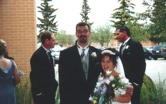 Another first for Jenn and I was to attend a wedding together. Although she is not in the pic she took one of Daniel, Shane and I. Try not to laugh at the goatee, it was my "umemployed look" and oddly enough was hired soon after this picture, goatee and all! I mean how can a you laugh at me when I had a date like Jenn to go with me?