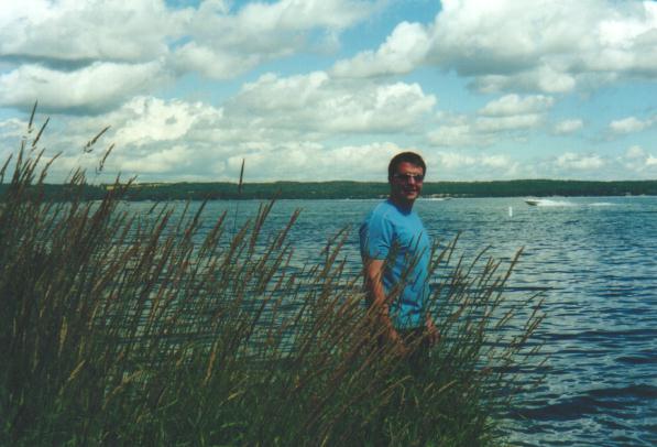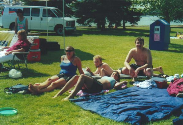 Nearing the end of the summer we went out to Sylvan Lake for a week-end with some friends from home and had a blast at a cottage that a few friends rented for the week. Sylvan Lake is like Alberta's answer to Nova Scotia's Bras D'Or Lakes with nice scenery and a lot of tourists. Here is a pic the first night there when we played cards out on the front lawn before heading out on the town. The next day we rose eager to head to the lake on the boat, but it was not meant to be as we ran into mechanical trouble. Here I am near the launch that never was. Later we made our way to the beach area where people were playing volleyball and others watching.