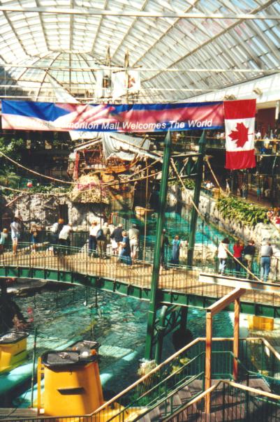 And the last trip before I officially called it a summer was to Edmonton where we took in the West Edmonton Mall, the world's largest Shopping Mall and Leisure Centre. This place was truly gigantic and to get an idea I have a few pics to demonstrate its enormity. First, we went skating on the NHL sized rink that is used by the Oilers from time to time and also skated on by Wayne Gretzky. Next we discovered the waterpark and saw the most enormous waterslide I have ever layed eyes on. Then we made our way to the submarine ride which carried passengers underwater through a huge pool. Next to the submarine pool was a dolphin pool that had two very playful dolphins inside it. Lastly we saw a full sized replica of the Santa Maria which you could venture onto if you were not too worried about having to walk the plank-Arghhh!