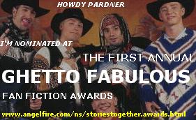 (A)(A HREF="https://www.angelfire.com/ns/storiestogether/awards.html")(IMG SRC="https://www.angelfire.com/ns/storiestogether/banner4.jpg)(br)COME VOTE FOR ME AT(br)THE GHETTO FABULOUS FAN FICTION AWARDS!)(/a)