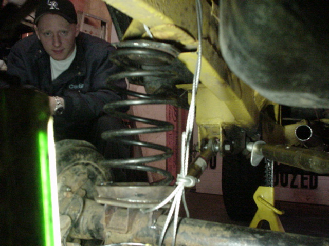 Once that is done, you can start to take measurements in order to center the axle under the samurai, take your time in doing this or she wont drive quite straight. Now back to the strut, cut off the upper and lower coil mounts and weld a plate of steel on each one for strength. Test fit it, center the springs and weld in place. Build some limting straps, so your coild don't fly out and make sure is tight, and go flex on the closest thing you can find!!!