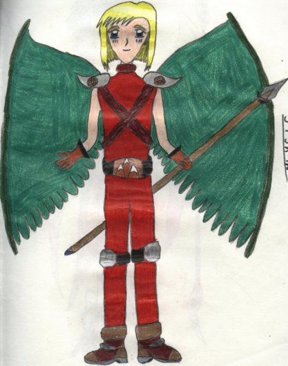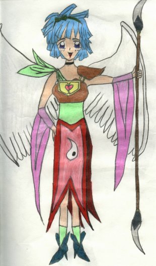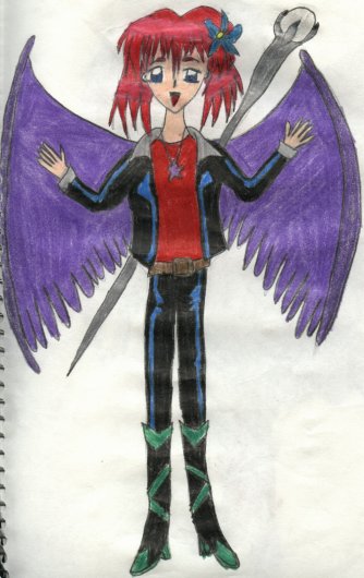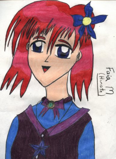 This is Hinote from my original anime series, Maryoku Inai Sono Tsubasa (Magical Power Within The Wings). She can control the Fire Element and she's the leader and future queen. As a human she's the new student at a high school the others attend and she is known as Faia Mitsukai.
