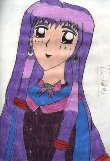 This is Gesshoku. She can control the Lunaria (Moon) Element and she's the team's healer and sharpshooter. As a human she's quite the artist and musician and she is known as Moroi Tsukiakari.