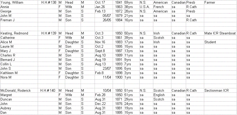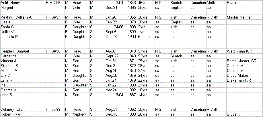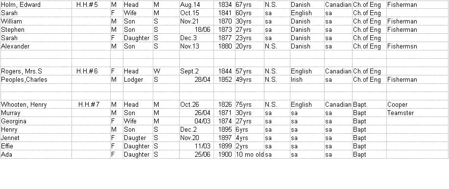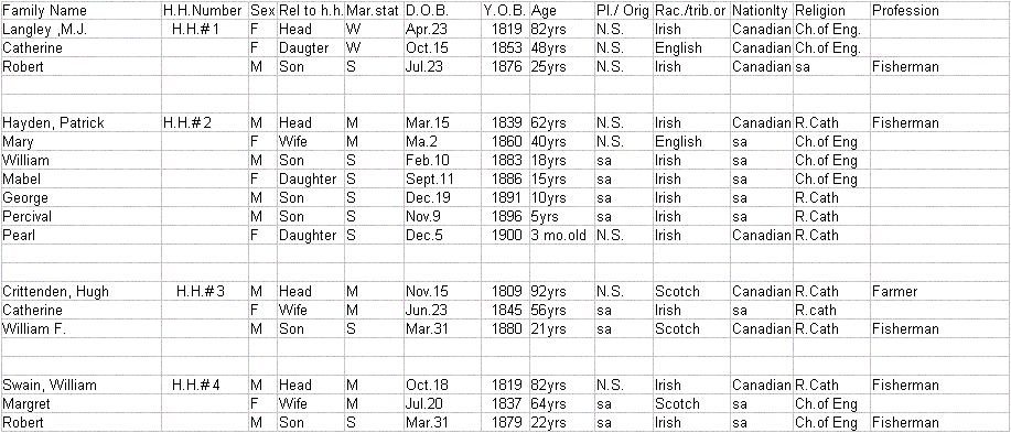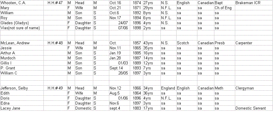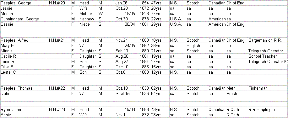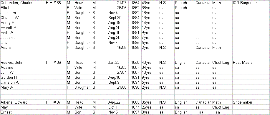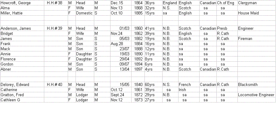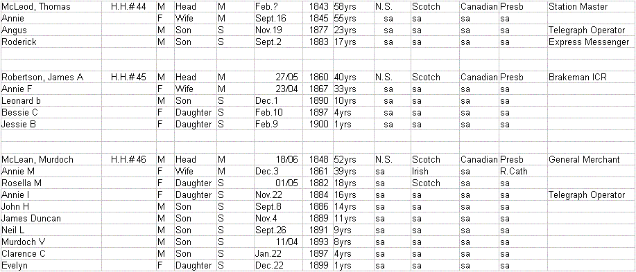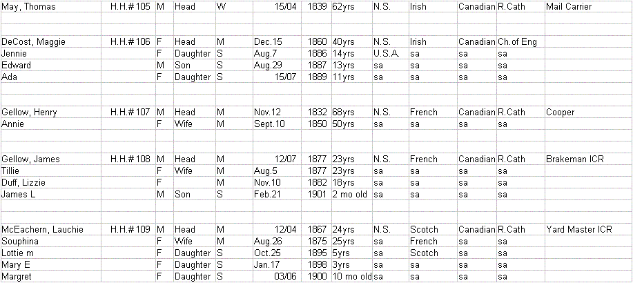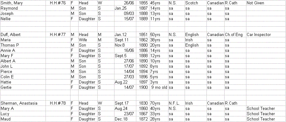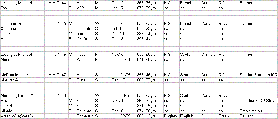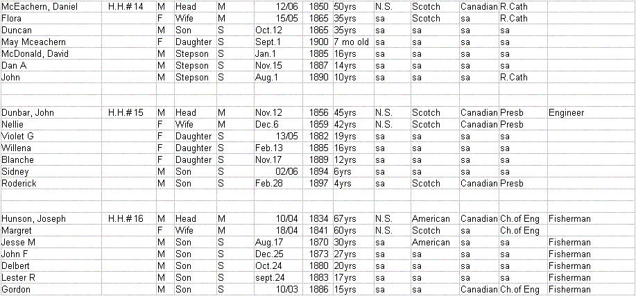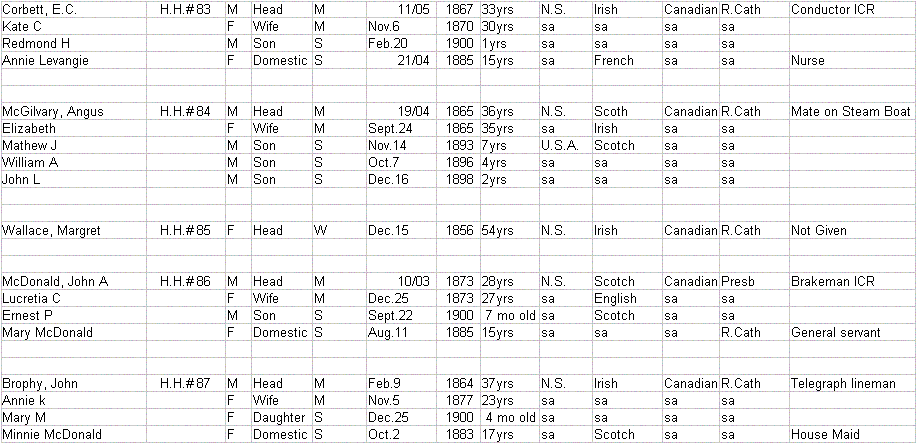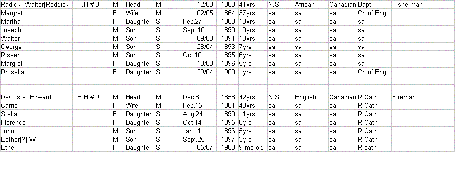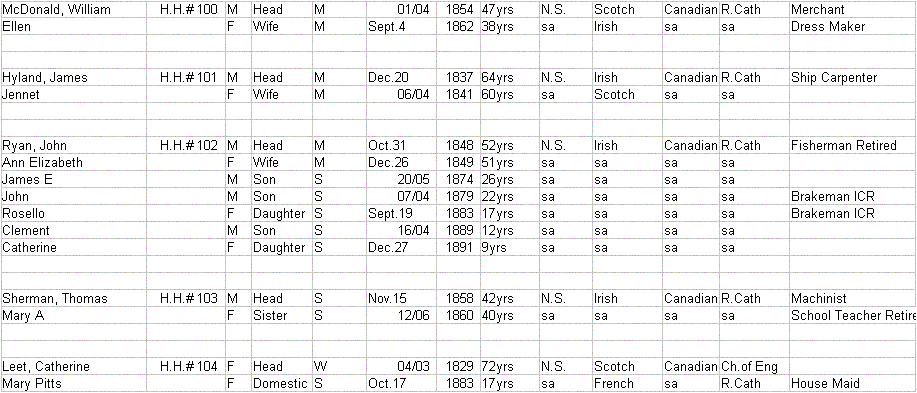 H.H.#42 Dunbar,Alexander H.H.#43 Loggie,E.A. H.H.#44 McLeod,Thomas H.H.#45 Robertson,James A H.H.#46 McLean,Murdoch H.H.#47 Whooten,C.A. H.H.#48 McLean,Andrew H.H.#49 Jefferson,Selby H.H.#50 Irish,William H.H.#51 Beshangue,Thomas H.H.#52 Jarvis,George H.H.#53 Grant,L.A. H.H.#54 McDonald,John K H.H.#55 Whooten,Charles H.H.#56 Webb,Maurice H.H.#57 Stewart,Daniel H.H.#58 Murray,David H.H.#59 Wylde,W.S. H.H.#60 Nicolle,Walter H.H.#61 Cesale,Joseph H.H.#62 Hart,Josiah H.H.#63 Murray,James W H.H.#64 McKenzie,John H.H.#65 Murray,Harriet H.H.#66 Pushie,Nathan W H.H.#67 Keating,John H.H.#68 Hadley,George H.H.#69 Trites,Rachel H.H.#70 Mullins,B.M. H.H.#71 McKinnon,John H.H.#72 McEachern,Mary H.H.#73 McDonald,John H.H.#74 Hadley,Robert H.H.#75 Hadley,Henry H.H.#76 Smith,Mary H.H.#77 Duff,Albert H.H.#78 Sherman,Anastasia H.H.#79 Mann,M.J. H.H.#80 Forrestall,Archie H.H.#81 keating,M H.H.#82 Keating,Redmond