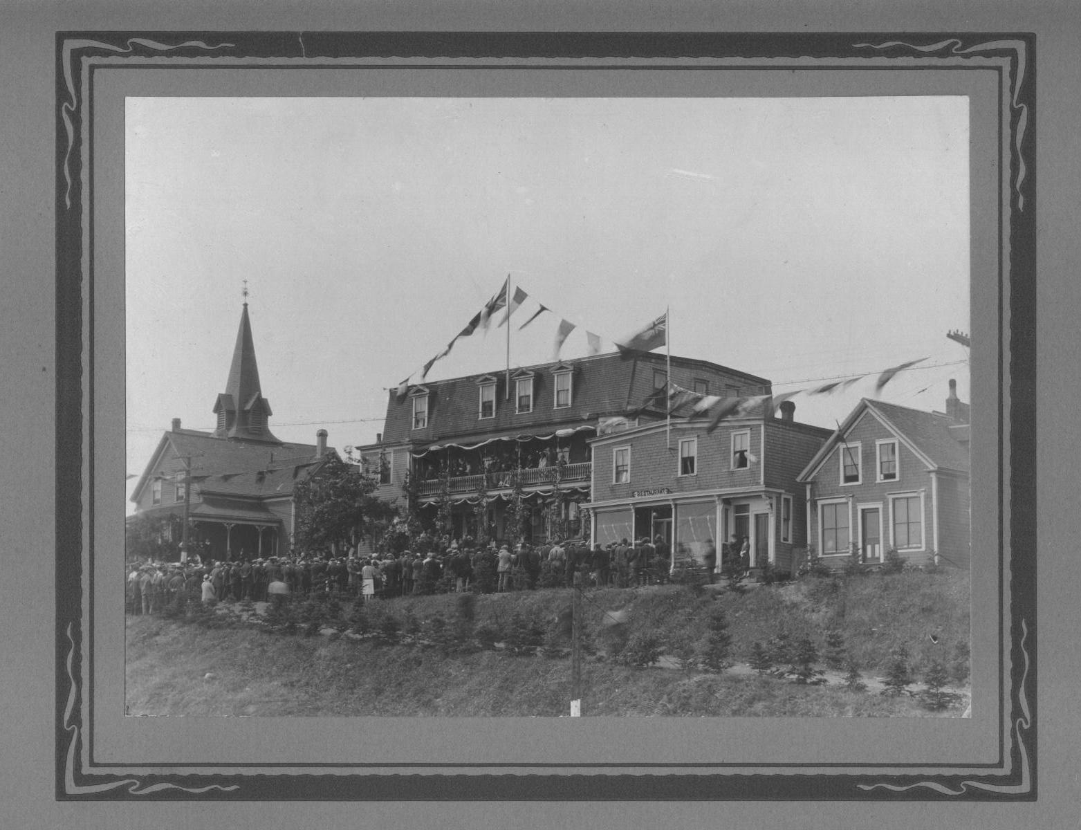 This photograph was taken about 1923,during Lord Byngs visit to Port Mulgrave. The location was at the old Seaside Hotel, located where the present day post office is.