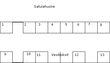![]() © sah Oritallista löytyy paikat 11 hevoselle ja kaksi vesikarsinaa. Karsinat ovat 4 x 4 metrisiä. Osassa karsinoista on kaltereilla varustettu ikkuna, josta voi kurkistella ulos. Jokaisesta karsinasta löytyy vesiautomaatti, ruokakuppi sekä suolakivi. Aluset ovat olkea, joka tiputellaan ylisiltä, samoin kuin heinätkin. Oritallissa hevoset eivät saa päitään käytävälle, koska tappeluja syntyisi niin herkästi. |