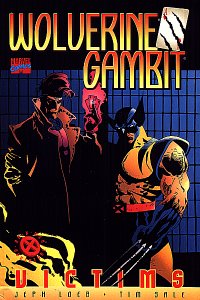 Title : Wolverine/Gambit: Victims ISBN #: 0-7851-0258-2 GST # : Not listed First Printing: 1996 Creative Team: Editor: Mark Powers Writer: Jeph Loeb Artist: Tim Sale Marvel Timeframe: Logan as Wolverine during the bone claw period. Other Marvel Characters of Note: Gambit, Rogue, Arcade, Mastermind II, Yukio, Mariko, Miss Locke |