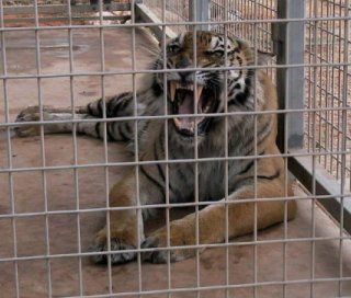 Quintus Septimus, a Sumatran Tiger, resides at Crocadylus Park in Darwin and is paraded whenever possible in the comfort of a vehicle mounted cage.