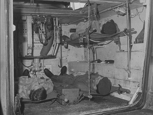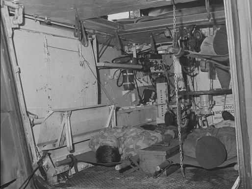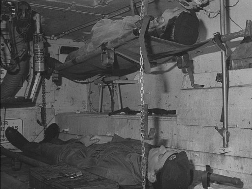 The Australian modified litter kit retains many of the original parts however the number of stretchers is reduced to 3. The top stretcher is angled to avoid the turret cage and the bottom two are tied to the floor.