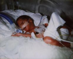 This is Alyssa with her Daddy's hand over her. Her ventilator had just been removed.