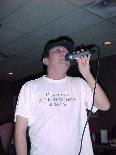 Me and Halley (sp), my buddy Jason's daughter. Hello there. Hopefully most of you know me from the net (I used to chat on Yahoo as Icon_Ice, and use ICQ #21585353), but if you don't, you might know me IRL (In Real Life for the non-netters). But then again, you might have come here from one of the search engines (why, may I ask?), from a links page on another server, or from the cruel advice of a friend. (hee hee). Or you may have come in on my personal invitation from Wimba.com (a site that I've sung a couple of country songs on as Icon-X). Anyhow (we like to say that up north, eh), here's what I think is anything and everything about me. This pic was taken of me by Mike vanGurp on the streets of Grande Prairie, Alberta. Name: Adam C. Aylward What's the "C" stand for: Classified A Personality Assessment based on my first name: The name of Adam gives you the desire to meet and mix socially and to create congenial circumstances for everyone. However, all too often, you express yourself in a matter-of-fact or awkward way that results in your good intentions being misunderstood. If you are in sales work, you could do well because of your friendly personality, interest in people, and desire to please. You prefer situations that allow a degree of independence, but are not too demanding in work-load or responsibility. When asked, you are able to give others good advice that you would probably not follow yourself, but must guard against being too opinionated in controversial matters. While you can appear to be confident, you need the moral support and encouragement of others who give inspiration and strength. Weaknesses in health show in the senses of the head as well as in the various fluid functions of the body. Born: February 6th, 1972 Interesting birth fact:I was born two days after NHL'er (currently playing for the Columbus Blue Jackets) Geoff Sanderson in the same very small hospital. H.H. Williams Memorial Hospital. Sign:Aquarius (what's yours, baybee?) Numerology Number:Nine (see below) Birthplace:Hay River, Northwest Territories, Canada, North America, Terra Firma, Earth (got it?) Eyes: brown Hair: brown Height: 5'10 Weight: shy of 200 lbs Marital Status: Married on July 7th, 2001 to the most wonderful woman, who still... shall remain nameless. Talents: Acting, singing, two-stepping, club dancing, cooking spaghetti, and writing. Likes to do: Walks, talks, hiking, biking, dancing, singing, acting, partying, misbehaving, and most things that end in "ing." Dislikes to do: Dishes, making excuses, lying, anything I've been co-erced to do, hurting someone's feelings, excluding people from things because other people don't want them there. Likes (character traits): Honesty, open-mindedness, tenderness, sweetness (not too sweet), self-assured, opinionated (but not close-minded), versatility (can hang out with anyone), fun-ness (forgive ME if it's not a word!), a sense of adventure, and an ability to cuddle (girls that is). Dislikes (Character Traits): Rascist, bigots, ignorant people bother me. Cliquey people bother me too. Cocky people (there is a difference from self-assured). Untrustworthy people. Favorite Haircolor (from most favorite): Red, blonde, black, and brown (I don't discriminate against the unnatural colors either like green). Favorite eyecolor (from most favorite): Green, blue, hazel and brown. Weaknesses: I fall for women with accents. (Any Irish women with red hair and green eyes could rule me with an iron fist and I would never bat an eye.) Favorite dish: Pasta. Favorite Beer: Molson Canadian Favorite Shooter: Gladiator Explains being "Normed": My buddy Norm likes to tie one on, on quite a few occasions. And one night while in another town partying it up, I lifted my beer to the heavens as lightning flashed around me and yelled, "I'm Normed!" And it stuck because my buddy Jason heard me and chuckled, "I'm Normed too." So it stuck. Picture taken by Chris Postma in Fort Smith, Northwest Territories. Me with such short hair in my Social Work class. Honestly, this is such a bad picture. Numerology Number #9 The keys to the nature of a Life Path number 9 person are compassion, generosity, and a very humanitarian attitude. This is the lesson that must be learned in this life. Usually this number produces an individual that is very trustworthy and honorable, and one unlikely to harbor any sort of prejudice. Obviously, this is a rather tall order, but you are, in fact, a person that feels very deeply for individuals less fortunate than yourself, and if you are in a position to help, you certainly will. You tend to be quite sensitive, as you see the world with much feeling and compassion. The 9, being the highest of the single digit numbers, holds an elevated position and poses certain responsibilities. The purpose of life for those with a 9 life path is of a philosophical nature. Judges, spiritual leaders, healers and educators frequently have much 9 energy. Material gains are not overly important, although the quality of some life path 9 people is such that they are materially rewarded in very significant ways. Often, the number 9 life path requires a very selfless attitude and the giving up of material possessions for the common good. Even the very average of those with life path 9 possess extremely compassionate tendencies. The desire to help others, especially the troubled or underprivileged, is strong. You are apt to frequently find yourself being used and let down by others, as your generosity is misused and abused. The number 9's very deep understanding of life is sometimes manifested in the artistic and literary fields. Here you may be able to express your deep emotional feelings through painting, writing, music, or other art forms. Often, however, there if a great deal of difficulty finding a suitable outlet for the 9 Life Path. The 9 is usually well suited to the helping and healing professions; the number is less inclined to the competitive business environment. You have the
