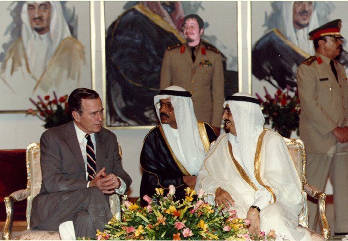 These were the words of Sheik Abdul Ad-Hazim, seen here meeting with George Bush, the ex-president of the USA. He is describing our macho leader Alex, who for some time worked as a personal assistant to the Sheik. According to his testimony, Alex became very fond of the towel-headed old man - so fond, in fact, that it eventually cost him his job. Was it this heartbreaking split from his dear friend that caused Alex to become the power hungry, despotic megalomaniac that he is today? It may well be!