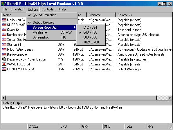 O primeiro emulador de Roms da Nintendo 64. Este emulador encontra-se na sua primeira versão e até ao momento consegue emular perfeitamente cerca de 55 roms cujo nome está contido no ficheiro "ultra.ini" que vem com o emulador.